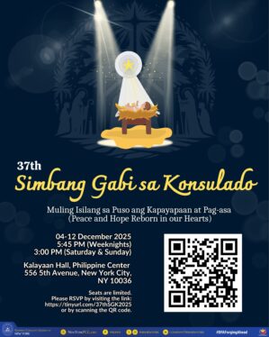 December 1 to 9 Franciscan Spirit Tours Contact Fr. Julian Jagudilla 917-880-7053 December 4 to 12 37th Simbang Gabi sa Konsulado Kalayaan Hall, Philippine Center 556 5th Avenue NYC December 5 Karafund for Cares Island Central Restaurant329 Central Avenue Jersey City NJ December 6 Simbang Gabi sa Katedral and Parol Procession St. Patrick’s Cathedral Fifth Avenue, […]