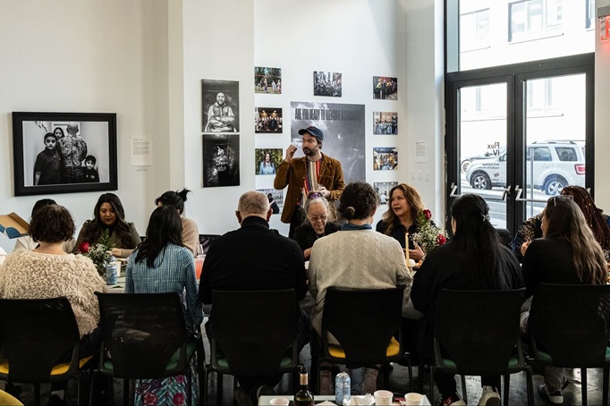 Xyza Cruz Bacani’s “The Diaspora is Home” exhibition which ran from October 4 – November 2,2025, at Flux Factory IV culminated in a Kamayan: Storytelling Lunch that felt like an excavation of the soul. For immigrants like me, the feelings of displacement often feels like a performance of composure—an endless effort to appear whole while quietly piecing together the fragments of culture sifted by migration.
