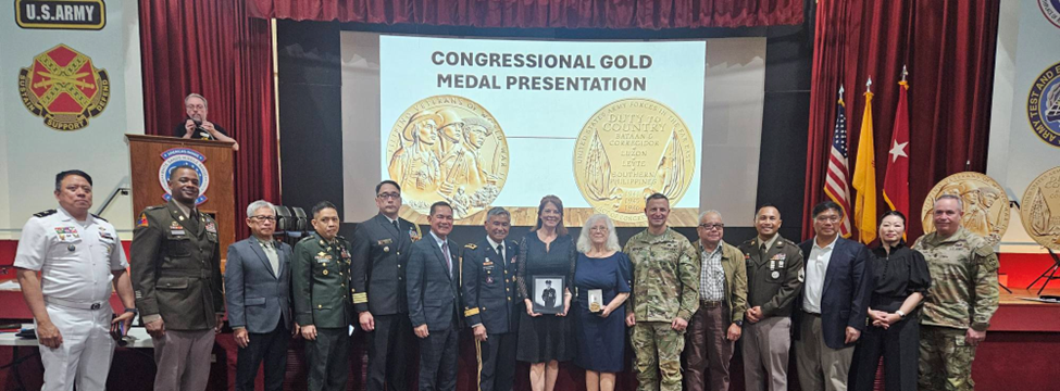 The day before the march, FilVetREP presented the Congressional Gold Medals (CGM) to the families of Private First Class Valentino Juanitas of the Philippine Scouts, Chief Petty Officer Leon San Juan Anterola of the U.S. Navy, and Private First Class Conrado V. Castroverde of Company H, 5th Infantry Regiment, Philippine Scouts.